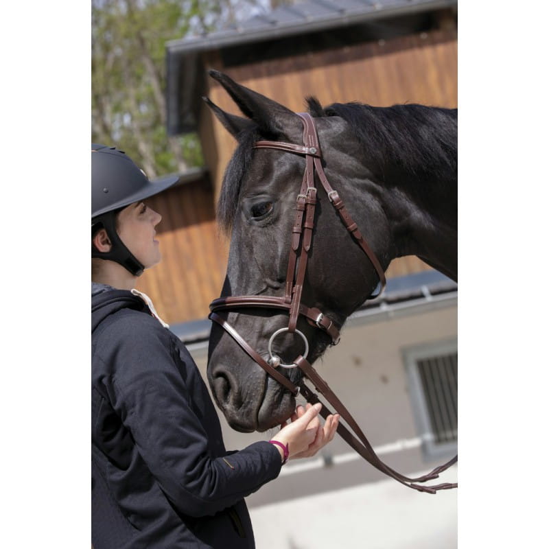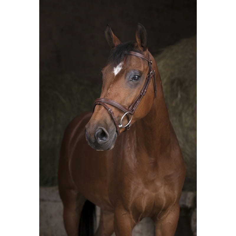 - wysokiej jakości ogłowie - wykonane ze skóry bydlęcej - miękko podszyty pasek potyliczny - prosty wąski naczółek - miękko wyściełany nachrapnik - w komplecie ze skośnikiem - sprzączki ze stali nierdzewnej - sprzedawane bez wodzy