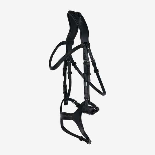 Półokrągły naczółek zapinany na zatrzaski można łatwo wymienić, co pozwala dopasować wygląd ogłowia do indywidualnych preferencji. Całość dopełnia subtelny haft na nachrapniku, który dodaje modelowi elegancji, a srebrne metalowe okucia podkreślają nowoczesny charakter tego ogłowia.