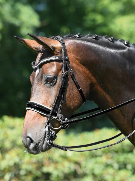 - składające się z innowacyjnego pasu potylicznego, pasków policzkowych, naczółka i podgardla dla indywidualnego wyboru uzdy