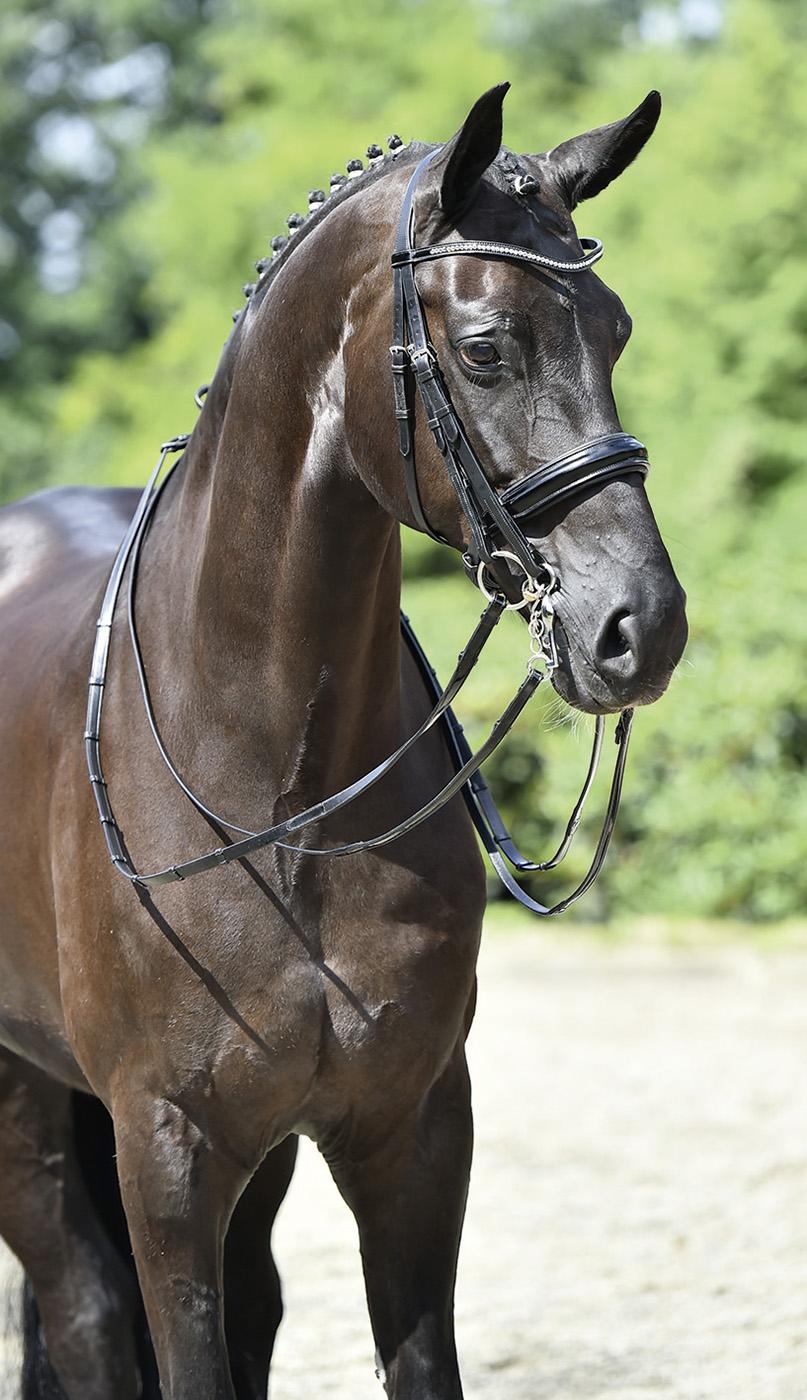 • ogłowie munsztukowe o optymalnej funkcjonalności i pięknym wzorze, wykonane z najlepszej włoskiej skóry uzdowej