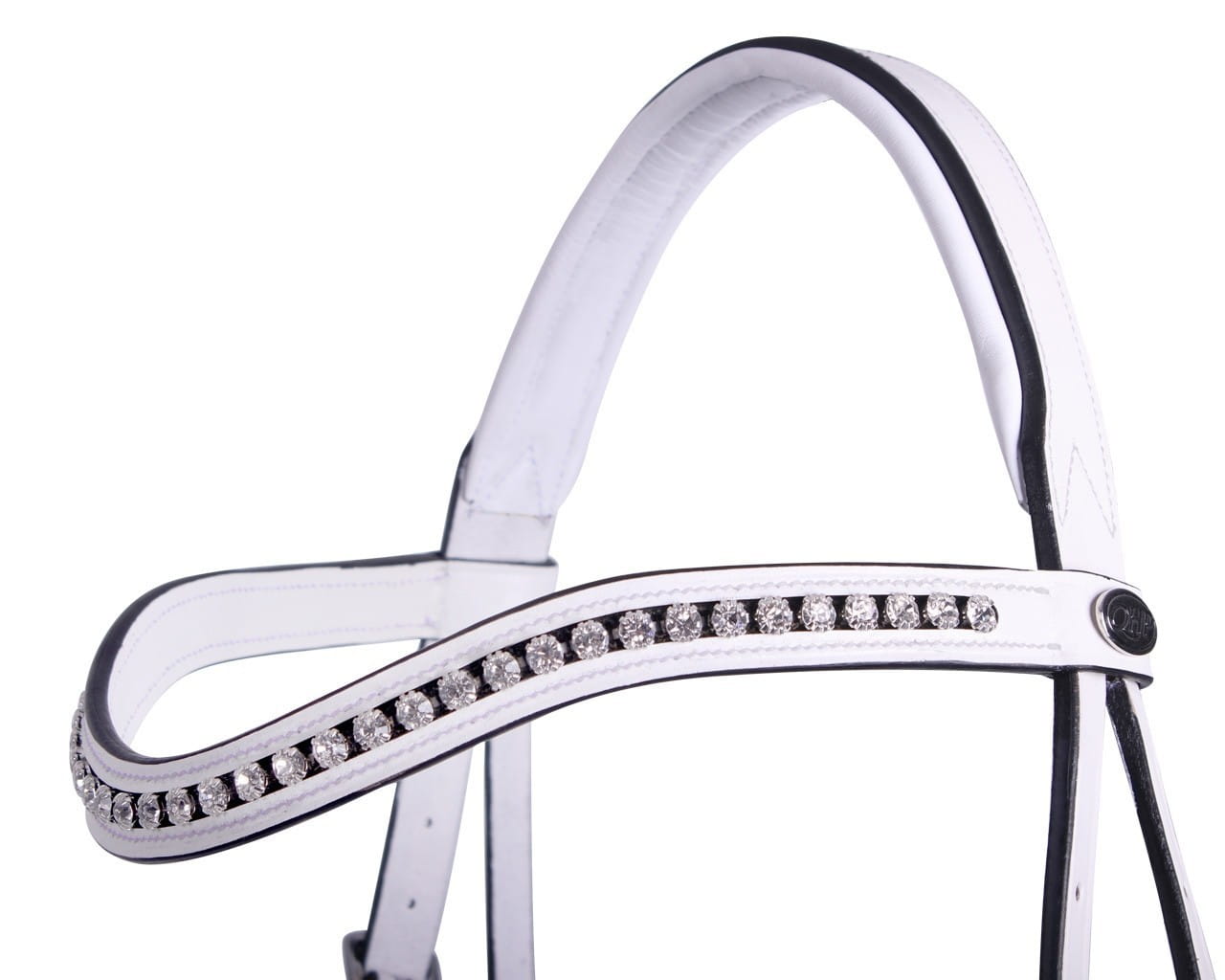 Ogłowie skórzane QHP "Luxe" – biała prezenterka z cyrkoniami