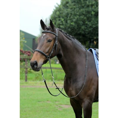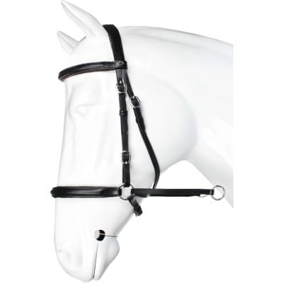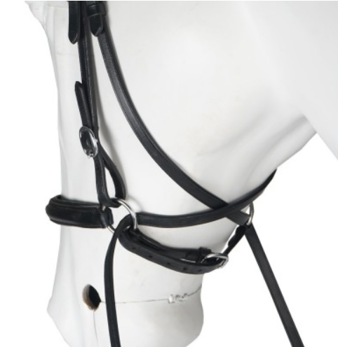 Skórzane bezwędzidłowe ogłowie z miękko podszytym paskiem potylicznym, nachrapnikiem i naczółkiem.