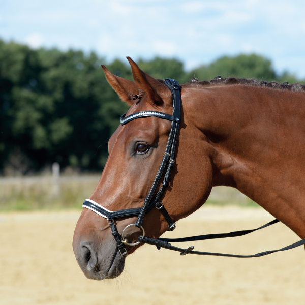 - wysoce nowoczesne, bardzo elastyczne i lekkie ogłowie z miękkiej skóry, o udoskonalonym, anatomicznym kroju umożliwiającym jednoznaczne,a zarazem bezpieczne oddziaływanie na konia