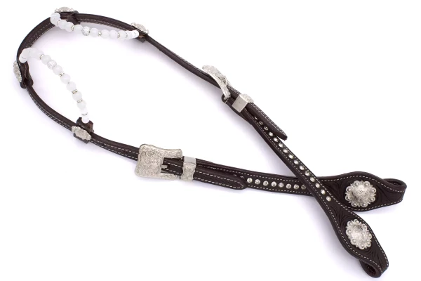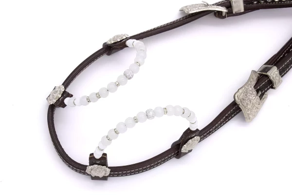 Pięknie zdobione ogłowie westernowe na dwoje uszu z koralikami.