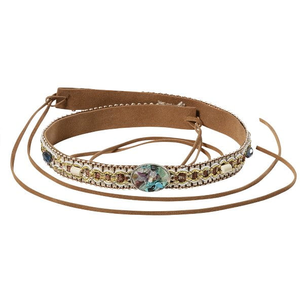 Pleciona opaska na kapelusz z koralikami i turkusowymi kamieniami.