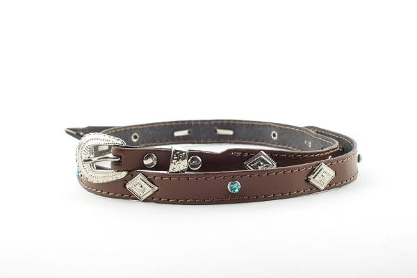 Pleciona opaska na kapelusz z koralikami i turkusowymi kamieniami.