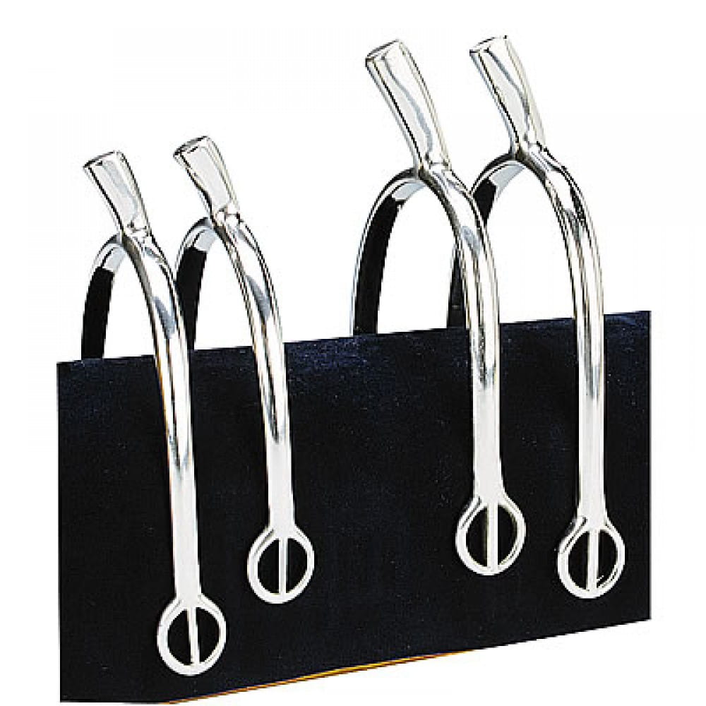 Ostrogi wykonane ze stali nierdzewnej. Posiadają zaokrąglone końce, co ułatwia przekładanie pasków. Wewnętrzna część ostrogi jest krótsza, dzięki czemu ostrogi lepiej dopasowują się do kształtu butów.