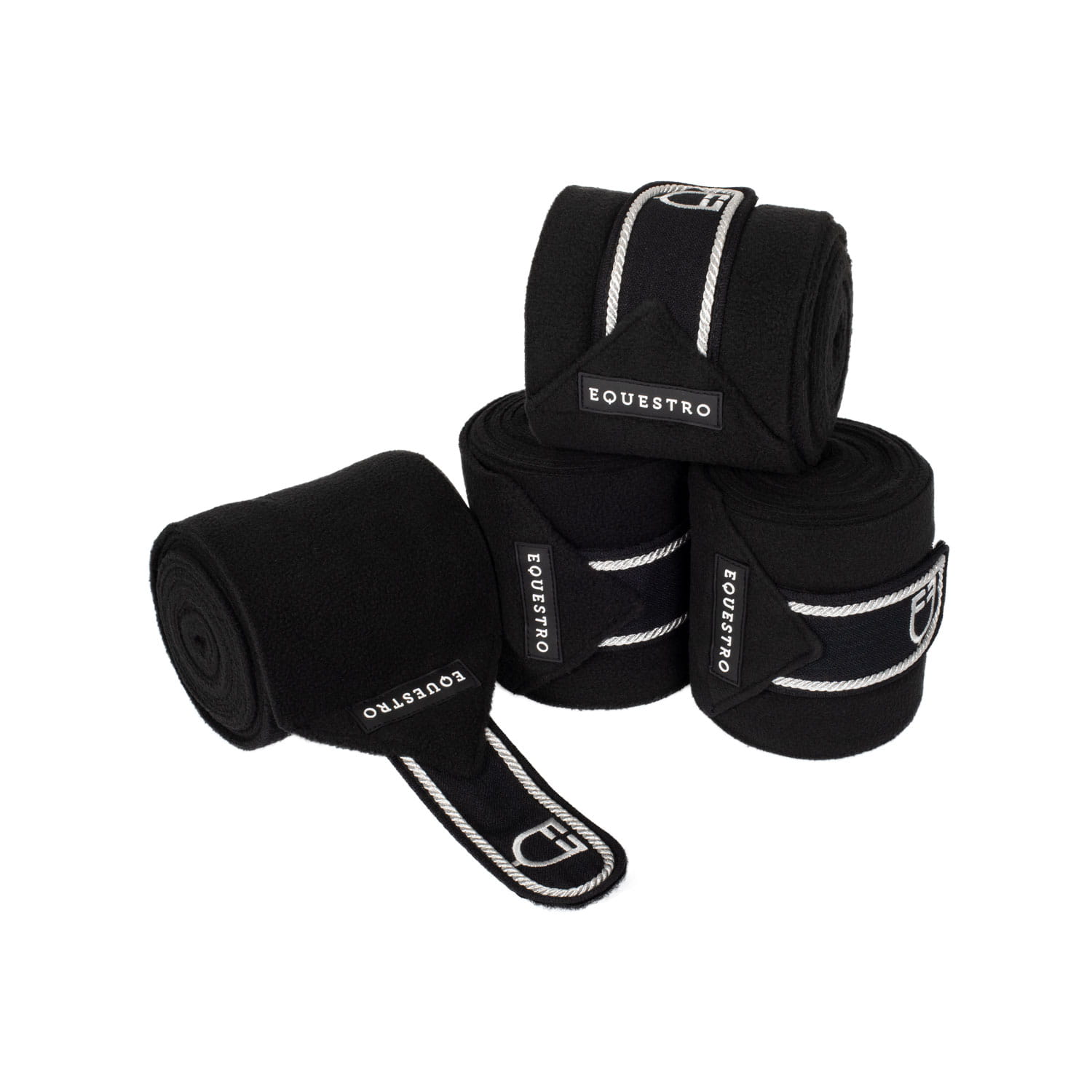 Wyposażone w mocne zapięcie na rzep , regulowane w zależności od potrzeb z wyhaftowanym logo Equestro.