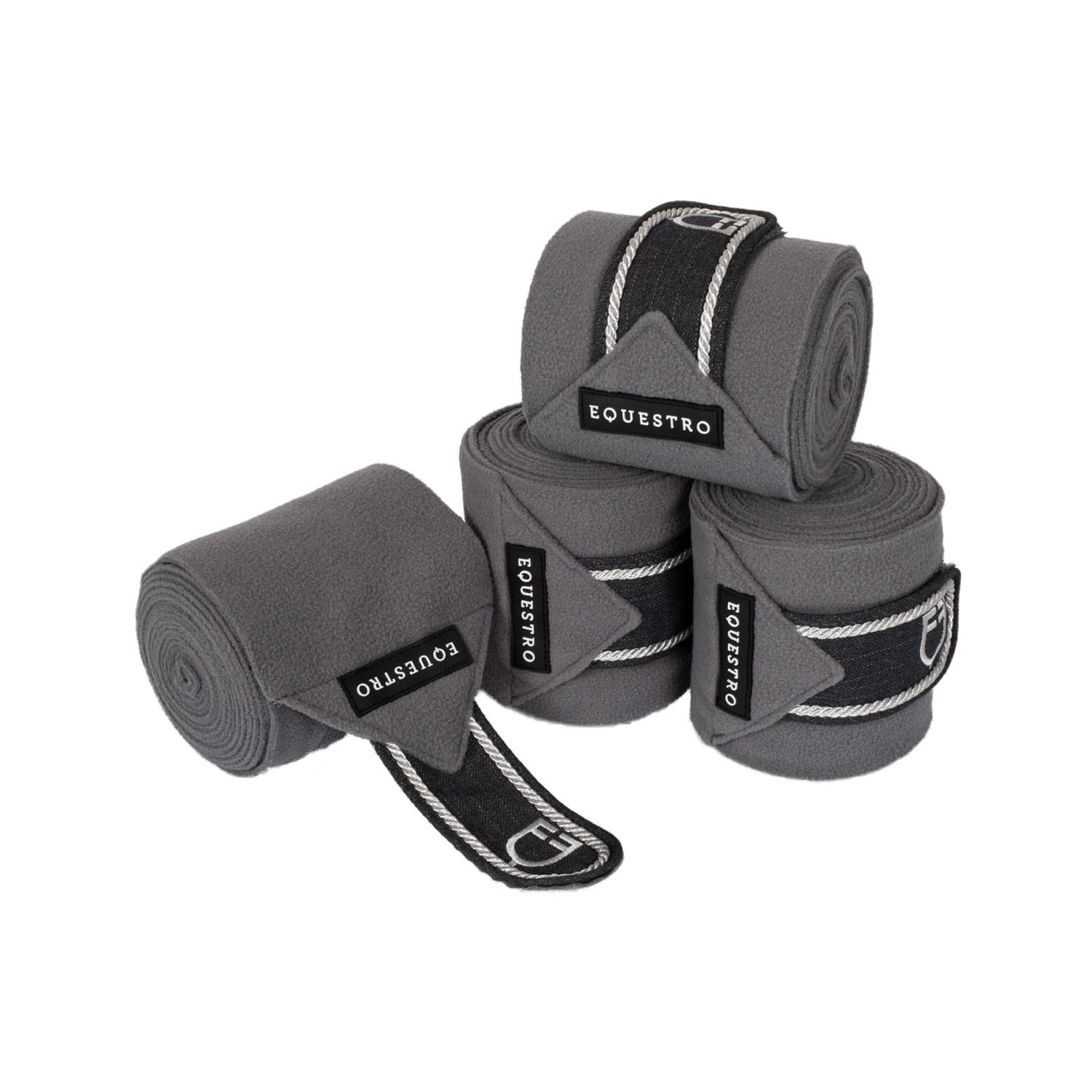 Wyposażone w mocne zapięcie na rzep , regulowane w zależności od potrzeb z wyhaftowanym logo Equestro.
