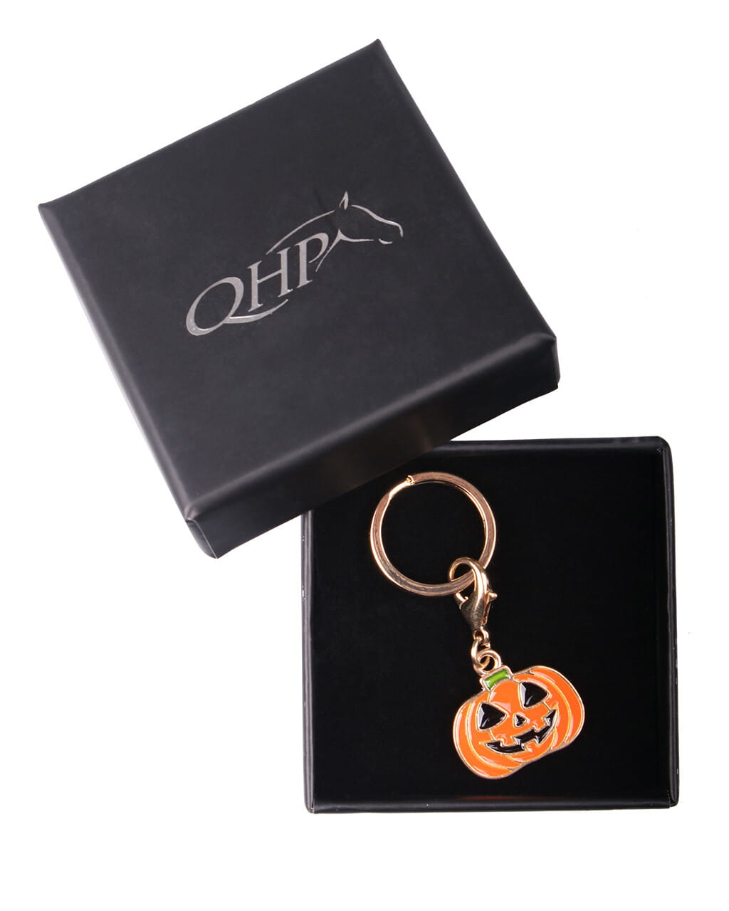 Stylowa ozdoba do ogłowia QHP w kształcie dyni to doskonały dodatek w klimacie Halloween! Wykonana z trwałego metalu, zawieszka nadaje końskiemu ogłowiu wyjątkowego, zabawnego wyglądu. Można ją z łatwością przypiąć do ogłowia, uzdy lub kantara. Ozdoba zapakowana jest w eleganckie pudełko upominkowe, dzięki czemu idealnie sprawdzi się również jako prezent.