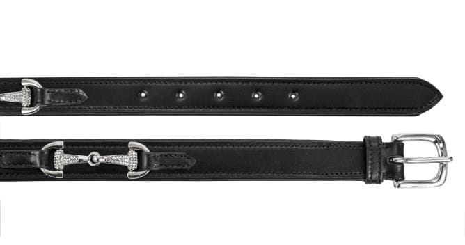 Elegancki pasek do spodni wykonany ze skóry wysokiej jakości. Charakteru nadają mu wędzidła wysadzane kryształkami. Idealnie dopełni Twoją stylizację! Szerokość paska - 2,5cm.