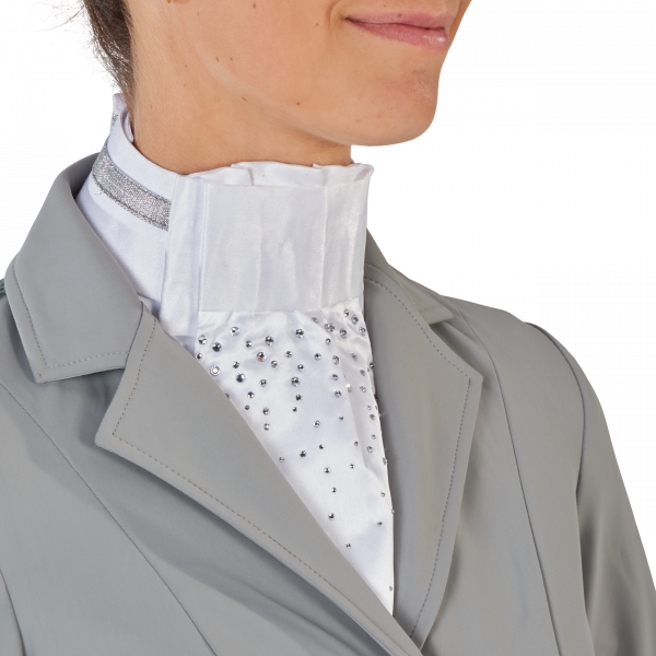 Ekskluzywny plastron wykonany z eleganckiej, błyszczącej satyny Stójka zaakcentowana srebrnym akcentem ozdobiony kryształkami klasyczny płaski wygląd, łatwy w użyciu Jednoczęściowy, kołnierzyk zapinany z tyłu na rzep łatwy w pielęgnacji, szybkoschnący, można prać w pralce 100% poliestru