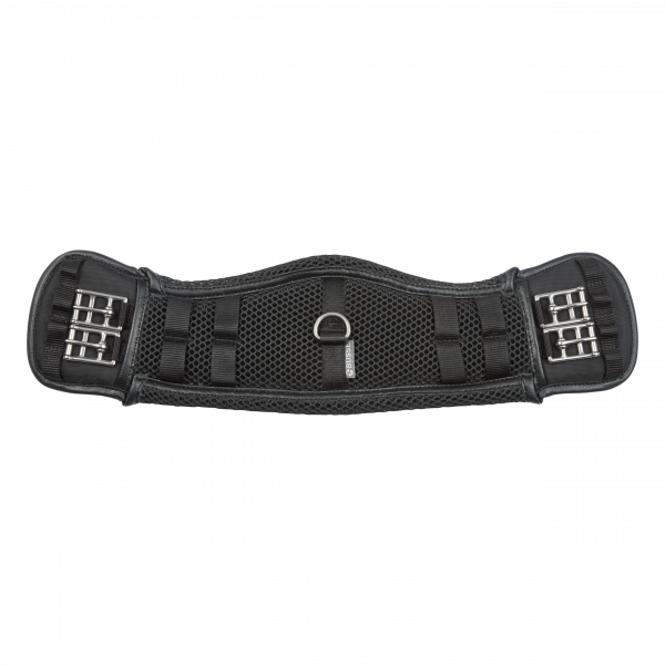 Krótki popręg w kształcie księżyca dla koni o pełnym tułowiu lub koni z wyraźnymi żebrami i wąską klatką piersiową, gdzie konwencjonalny popręg przesuwa się do przodu