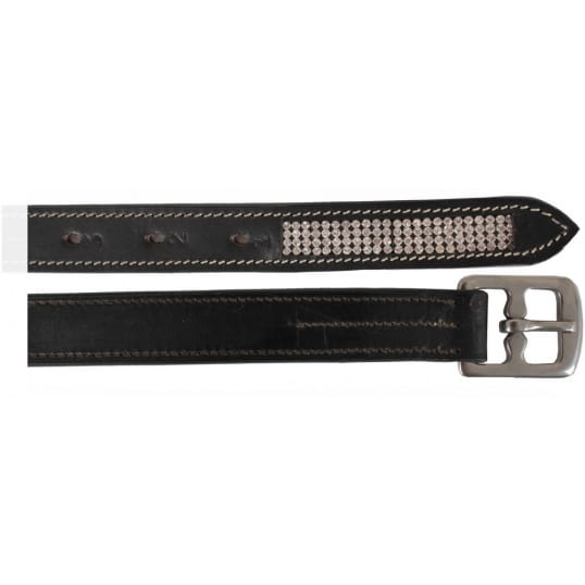 Czarne, skórzane puśliska z cyrkoniami i kontrastowym szwem.