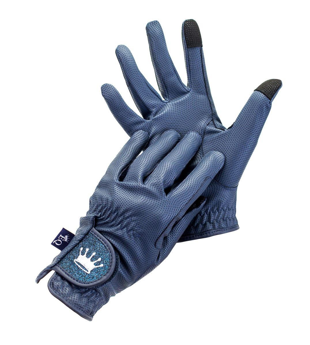 Eleganckie rękawiczki wykonane z antypoślizgowego materiału. Na rzepie posiadają haft korony na brokatowym tle. Na kciuku i palcu wskazującym wstawka z materiału umożliwiającego korzystanie z ekranów dotykowych.