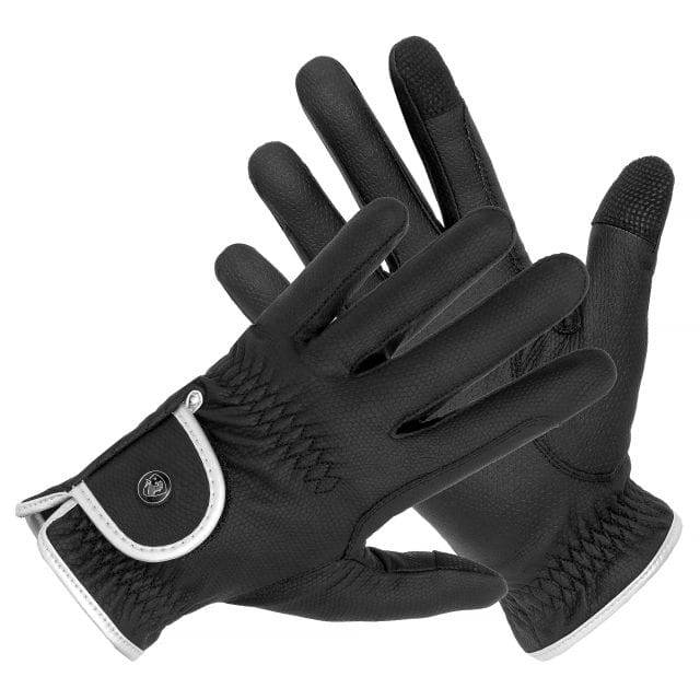 Rękawiczki wykonane z antypoślizgowego materiału podszyte polarem. Świetnie sprawdzą się przy niższych temperaturach. Zdobione srebrną lamówką oraz przypinką z logo. Posiadają wstawki na kciuku i palcu wskazującym aby bez przeszkód korzystać z telefonu.