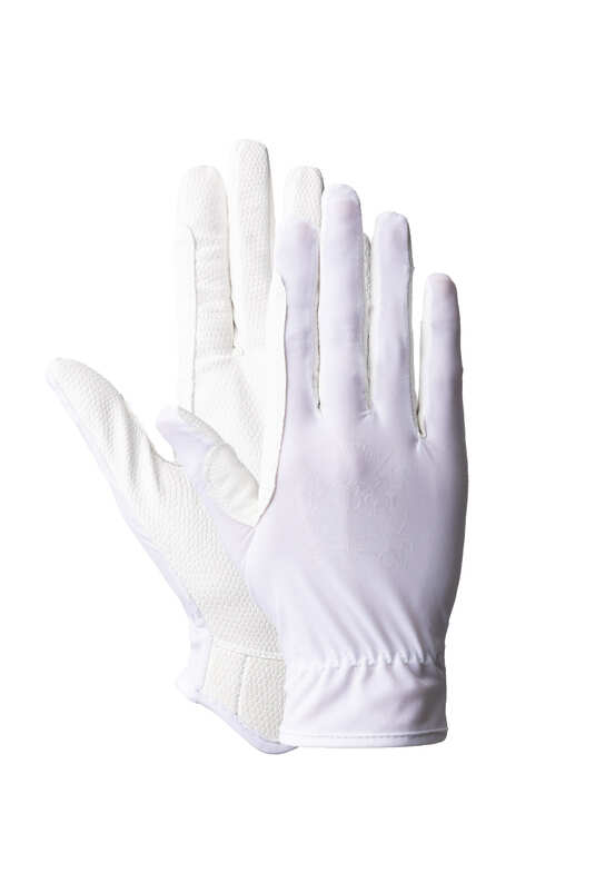 Górna część rękawiczek wykonana została z elastycznego materiału lycra, który dopasowuje się do dłoni, zapewniając swobodę ruchów i skuteczną wentylację. Ochrona przeciwsłoneczna UPF 50+ chroni dłonie przed szkodliwym promieniowaniem UV. Miękka dłoń z wysokiej jakości skóry PU pozwala zachować naturalne czucie wodzy, zwiększając kontrolę i precyzję podczas jazdy.