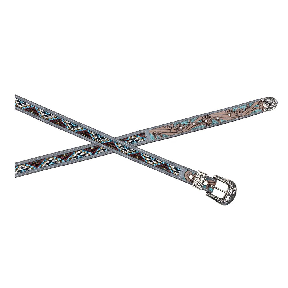 Wyjątkowy pasek skórzany westernowy to połączenie klasycznego rzemiosła z efektownym wzornictwem inspirowanym stylem Dzikiego Zachodu. Wykonany z wysokiej jakości naturalnej skóry, zdobiony ręcznie wykonanym wzorem oraz kolorowymi koralikami, przyciąga uwagę i nadaje charakteru każdej stylizacji. Solidna, ozdobna klamra z metalu podkreśla westernowy charakter paska i zapewnia trwałość na lata.