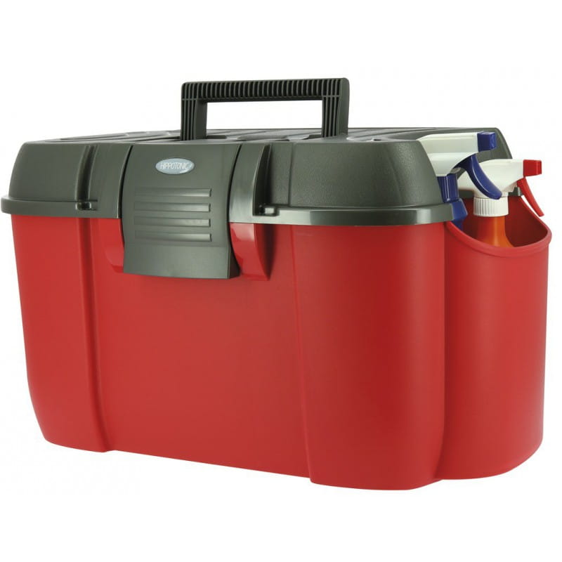 Pojemna skrzynka do przechowywania niezbędnych przyborów do pielęgnacji. Kieszeń boczna pomieści w pozycji pionowej nawet najwyższą butelkę. Duże plastikowe zamknięcie na klips, które utrzymuje pudełko bezpiecznie zamknięte podczas transportu. Możliwość zamknięcia na kłódkę, aby zabezpieczyć swoje rzeczy. Wyjmowana tacka na małe, trudne do znalezienia przedmioty. Wzmocniona pokrywa może wytrzymać do 120 kg.