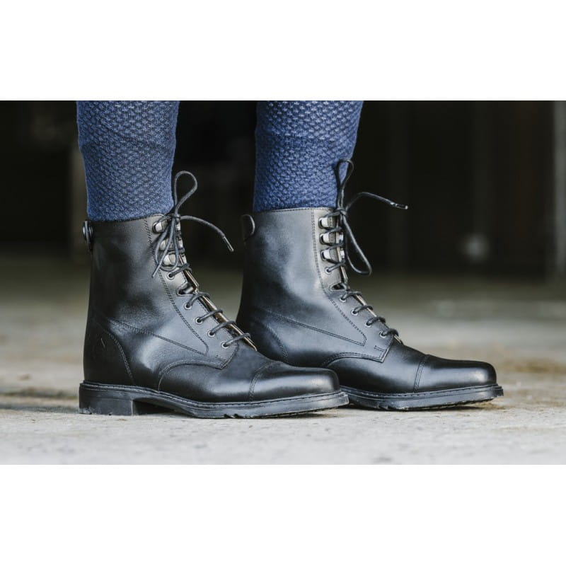 Buty ze skóry bydlęcej. Wygodne i wytrzymałe. Z przodu sznurowadła i haftki, z tyłu zamek błyskawiczny YKK. Podszyty świńską skórą. Antypoślizgowa podeszwa.