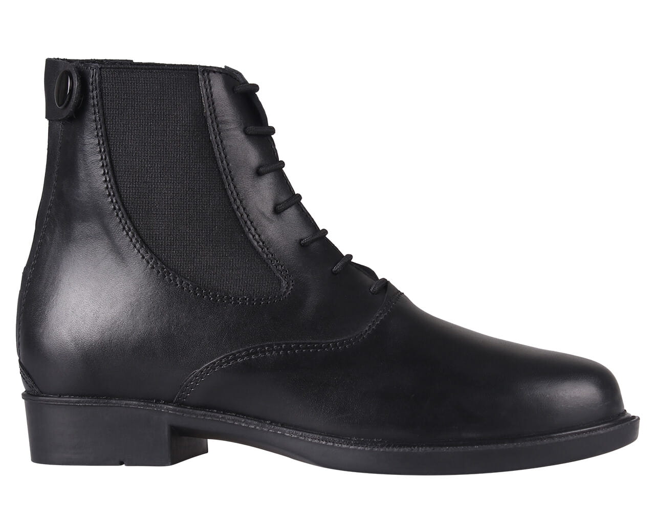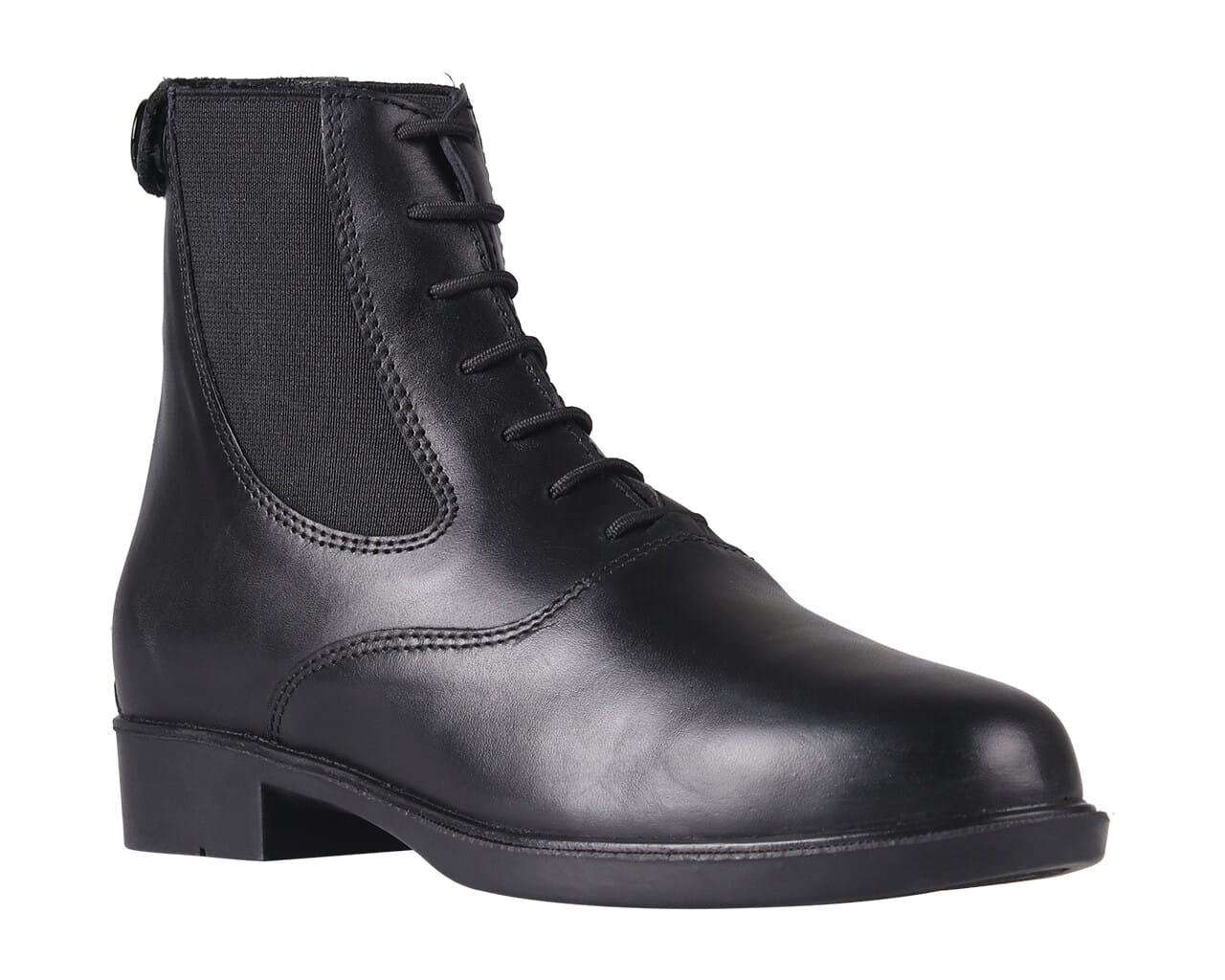 Z przodu znajdują się elastyczne sznurowadła, które nie tylko nadają butom stylowy wygląd, ale także ułatwiają ich zakładanie. Po bokach umieszczono szerokie elastyczne wstawki, zapewniające idealne dopasowanie do stopy oraz swobodę ruchu podczas jazdy konnej.