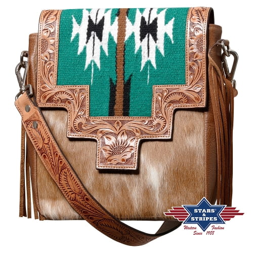 Piękna skórzano - materiałowa torebka damska w stylu western. Wykonana z największą dbałością o detale.