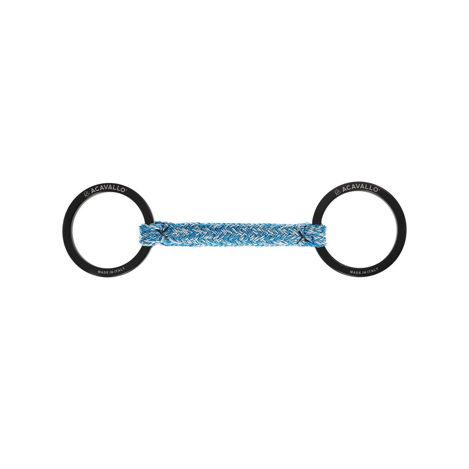 Acavallo „Jumpe” AluPro Bit jest wykonany z certyfikowanego, 100% odpornego na strzępienie skręconego włókna o nazwie „Jumpe” i jest wyposażony w dwa anodowane aluminiowe pierścienie, które są dostępne w różnych błyszczących kolorach o grubości 7 mm. Specjalny stop aluminium jest lekki, trwały, zapobiega korozji i gwarantuje długą żywotność produktu. Materiał „Jumpe” to skręcone, odporne na przecięcie, niestrzępiące się włókno, wysoce odporne na promienie UV, nie wchłaniające wody (wodoodporność) i łatwe do czyszczenia. W porównaniu do znanych już tworzyw sztucznych lub materiałów syntetycznych, główną zaletą „Jumpe” jest to, że jest prawie niezniszczalny przez gryzienie lub żucie konia, co czyni go wyjątkowo bezpiecznym i przyjaznym dla ust. Zewnętrzna średnica jego pierścieni wynosi 80 mm, co okazało się bardzo wygodne dla konia w tej konfiguracji. Polecany dla koni, które reagują wyjątkowo wrażliwe na metal i/lub nie lubią tradycyjnych sztywnych wędzideł. Wędzidło „Jumpe” idealnie dopasowuje się do pyska każdego konia, zwiększa komfort, jednocześnie minimalizując tarcie w porównaniu z innymi metalowymi lub gumowymi alternatywami. Aby uniknąć ryzyka przyszczypnięcia i dodatkowo zabezpieczyć pysk konia, sugerujemy stosowanie żelowych osłonek na wędzidła Acavallo.