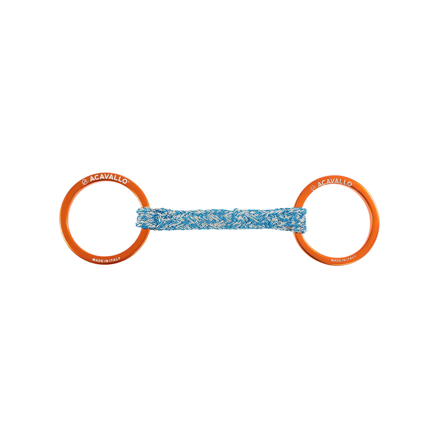 Acavallo „Jumpe” AluPro Bit jest wykonany z certyfikowanego, 100% odpornego na strzępienie skręconego włókna o nazwie „Jumpe” i jest wyposażony w dwa anodowane aluminiowe pierścienie, które są dostępne w różnych błyszczących kolorach o grubości 7 mm. Specjalny stop aluminium jest lekki, trwały, zapobiega korozji i gwarantuje długą żywotność produktu. Materiał „Jumpe” to skręcone, odporne na przecięcie, niestrzępiące się włókno, wysoce odporne na promienie UV, nie wchłaniające wody (wodoodporność) i łatwe do czyszczenia. W porównaniu do znanych już tworzyw sztucznych lub materiałów syntetycznych, główną zaletą „Jumpe” jest to, że jest prawie niezniszczalny przez gryzienie lub żucie konia, co czyni go wyjątkowo bezpiecznym i przyjaznym dla ust. Zewnętrzna średnica jego pierścieni wynosi 80 mm, co okazało się bardzo wygodne dla konia w tej konfiguracji. Polecany dla koni, które reagują wyjątkowo wrażliwe na metal i/lub nie lubią tradycyjnych sztywnych wędzideł. Wędzidło „Jumpe” idealnie dopasowuje się do pyska każdego konia, zwiększa komfort, jednocześnie minimalizując tarcie w porównaniu z innymi metalowymi lub gumowymi alternatywami. Aby uniknąć ryzyka przyszczypnięcia i dodatkowo zabezpieczyć pysk konia, sugerujemy stosowanie żelowych osłonek na wędzidła Acavallo.