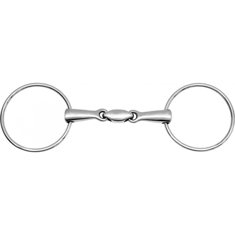 Wykonane ze stali nierdzewnej. Podwójnie łamane, pełne. Anatomiczny kształt wędzidła i eliptyczny łącznik zapewniają delikatne oddziaływanie na pysk konia.