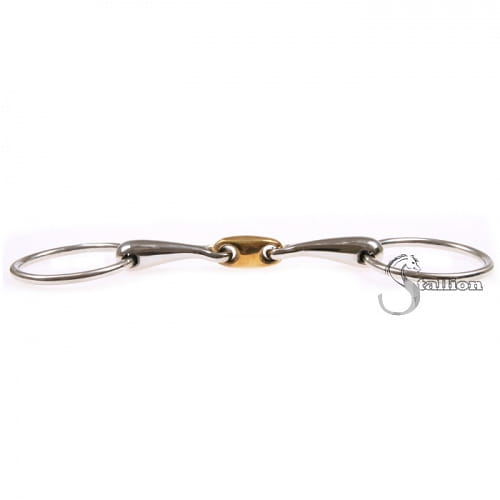Wykonane ze stali nierdzewnej z miedzianym łącznikiem, co zapewnia lepsze wydzielanie śliny i żucie wędzidła. Anatomiczny kształt łącznika sprawia, że wędzidło dobrze układa się w pysku konia i wywiera mniejszy nacisk na podniebienie, przez co jest łagodniejsze w działaniu. Grubość ściegierza: 18mm Kółka: 75mm