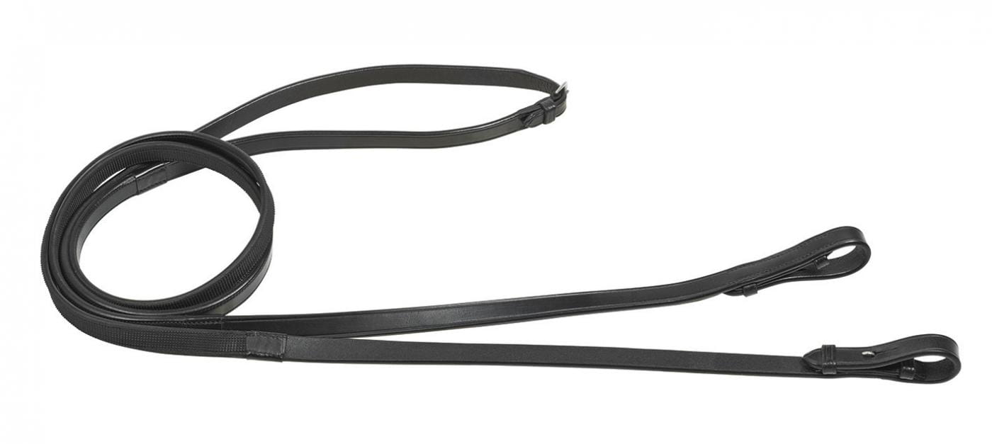pięknie wykonane skórzane wodze z profilem z gumy po wewnętrznej stronie zapewniającym pewny chwyt haki do pasków do wędzidła szerokość: 17 mm rozmiar: full