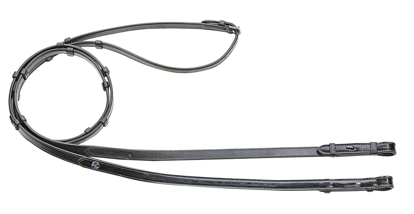 -optymalna funkcjonalność i piękny wzór; wodze wykonane z najlepszej włoskiej skóry -pro nature: wykonany głównie ze skóry garbowanej roślinnie -eleganckie wodze skórzane z dziewięcioma stoperami -przednie końce wykończone po stronie zewnętrznej lakierowaną skórą -haki do pasków do wędzidła -szerokość: ok. 15 mm długość: 145cm