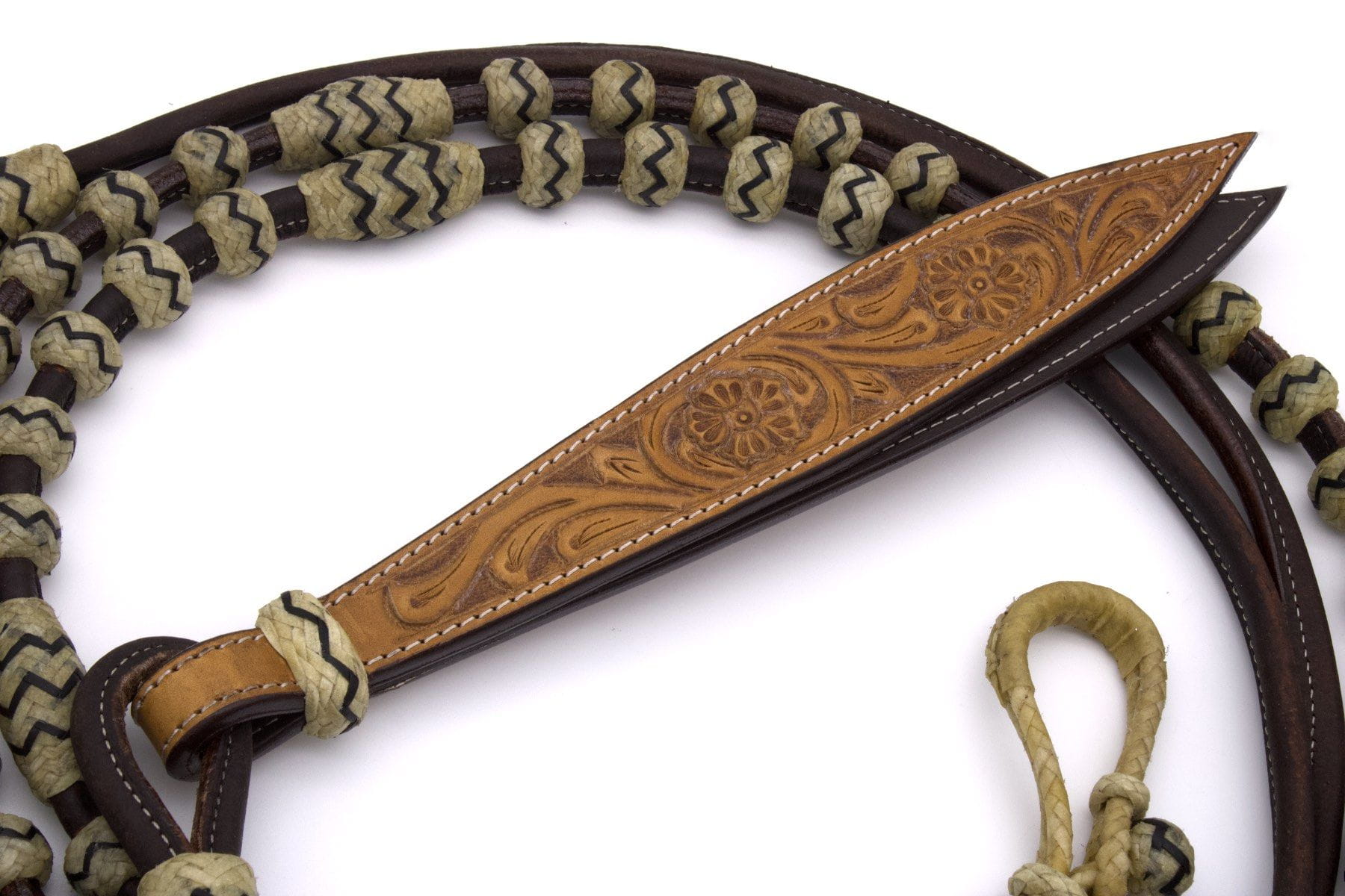 Wysokiej jakości skórzane wodze Romal wykonane z okrągło szytej skóry, idealne do stylu western i jazdy w stylu vaquero. Dzięki starannemu wykonaniu wodze są miękkie, elastyczne i doskonale leżą w dłoni, zapewniając precyzyjne prowadzenie konia.