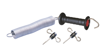 W skład zestawu wchodzi uchwyt bramowy, sprężyna bramowa i dwa izolatory bramowe.
