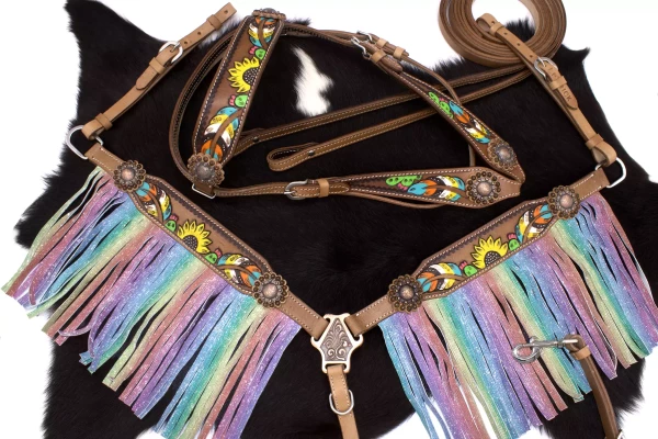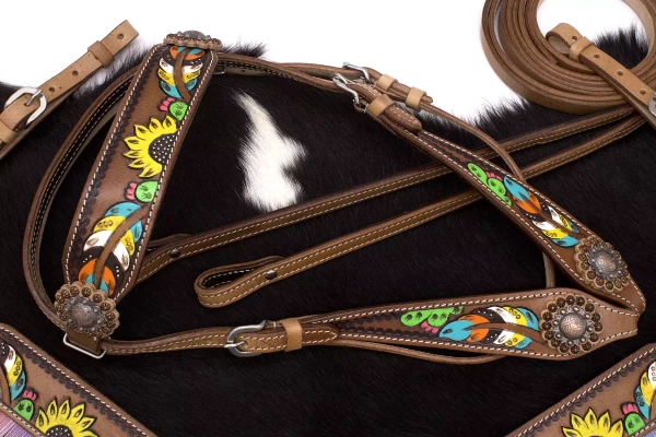 Zestaw westernowy ogłowie + napierśnik FLOWER