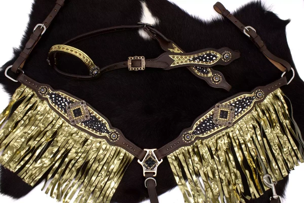 Zestaw westernowy ogłowie + napierśnik GOLD
