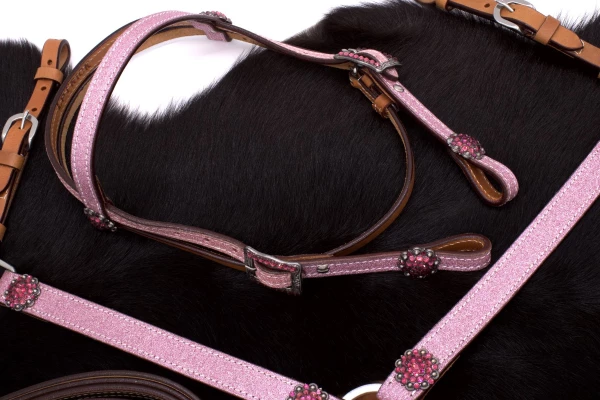 Zestaw westernowy ogłowie + napierśnik PINK STRASS PONY